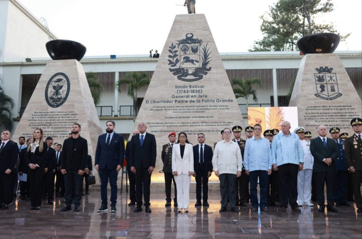 当地时间1月8日,委内瑞拉举行向在美国袭击中牺牲爱国者的致敬仪式。委内瑞拉代理总统罗德里格斯、国防部长洛佩斯、委其他军事高层将领,以及古巴外长布鲁诺·罗德里格斯共同出席仪式,缅怀为国捐躯的委内瑞拉士兵与公民,以及表彰在美国袭击中负伤的官兵。